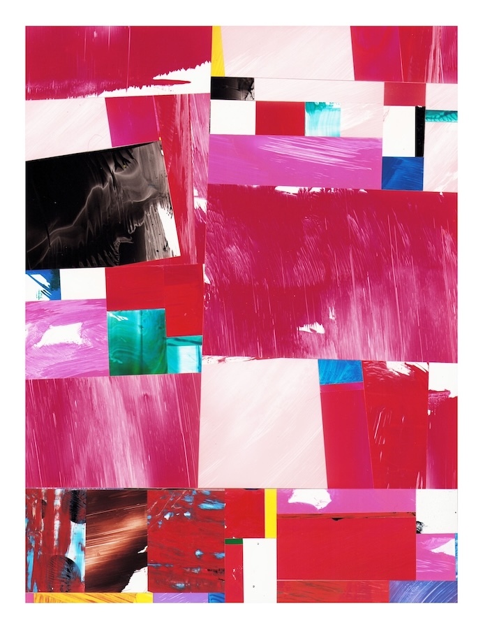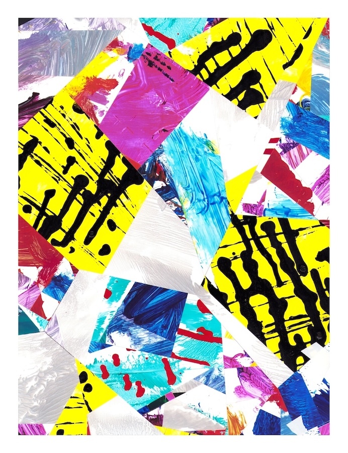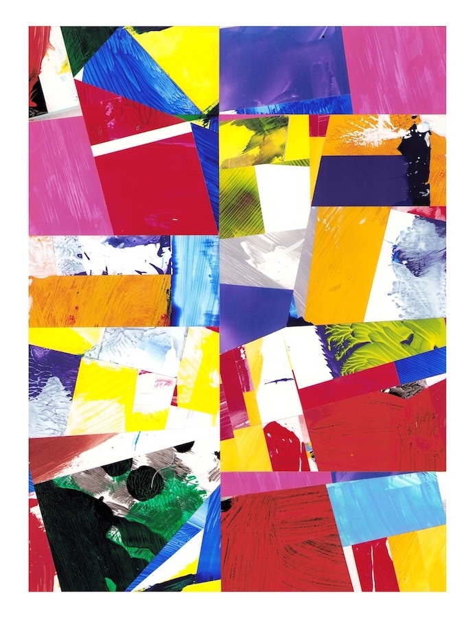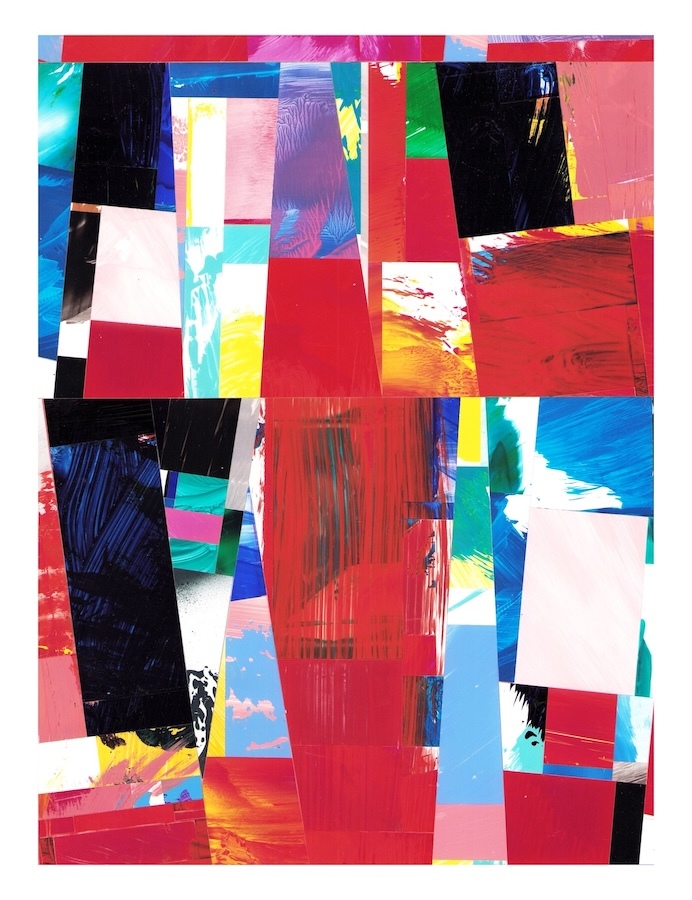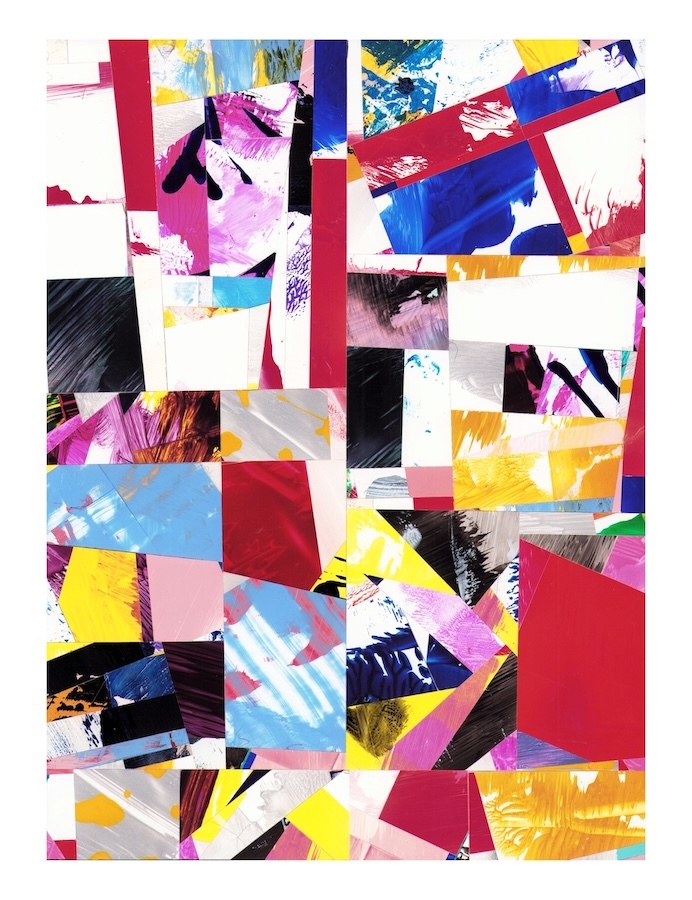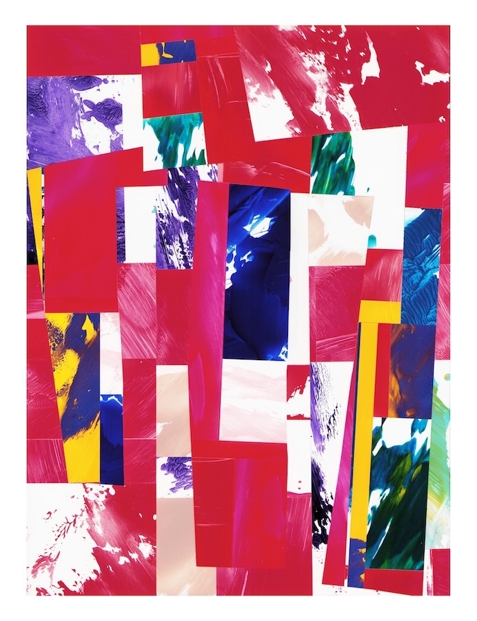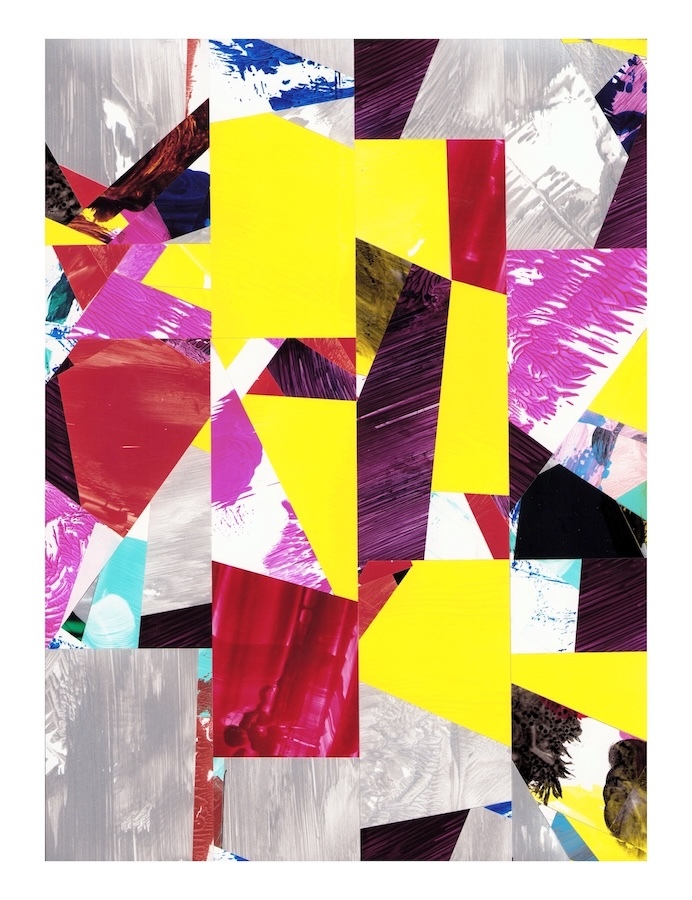 Selections- cut and assembled acrylic on PVC paper, 12″ x 9″