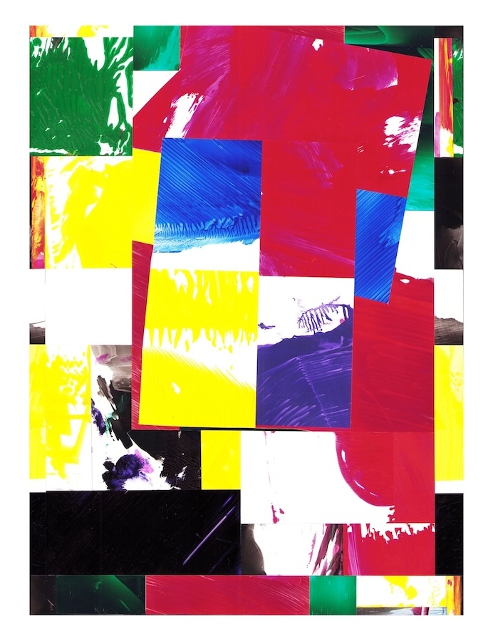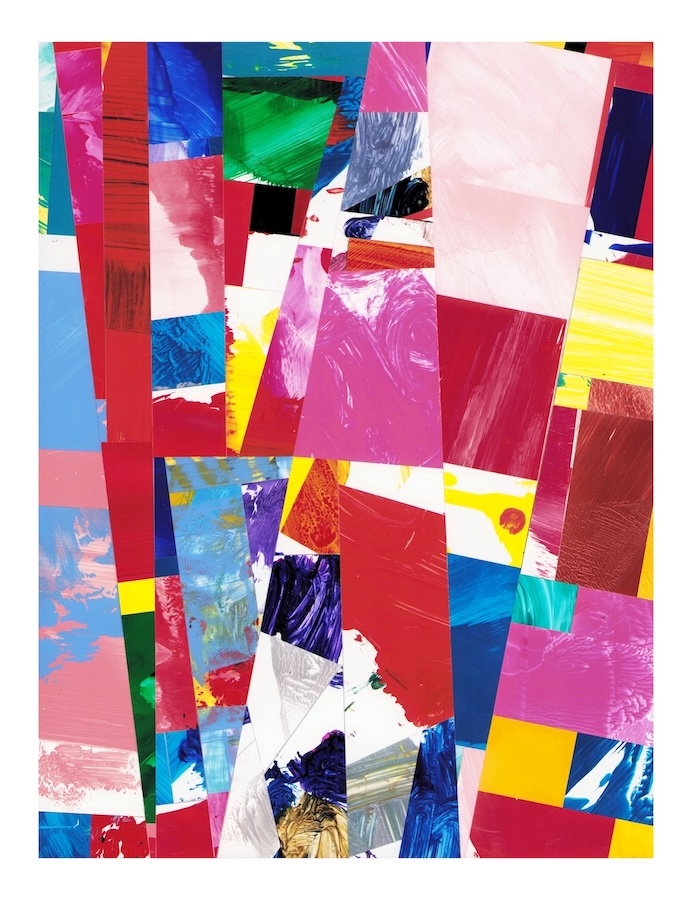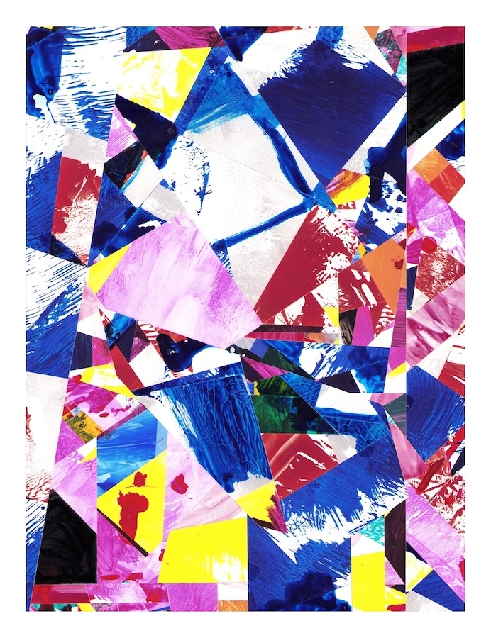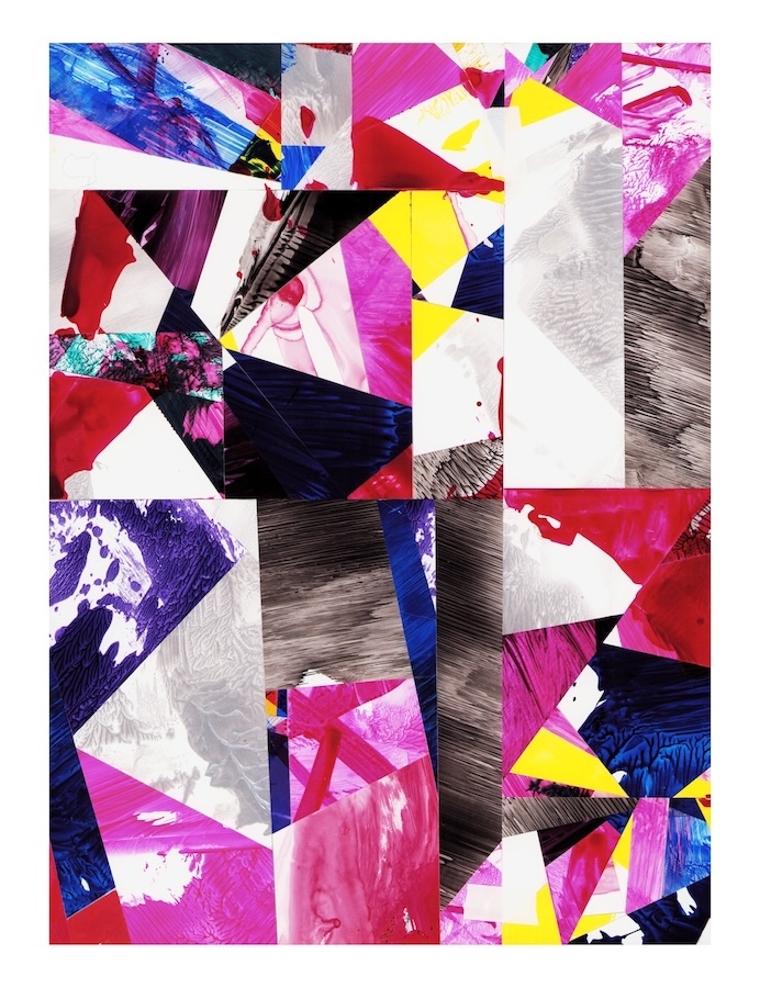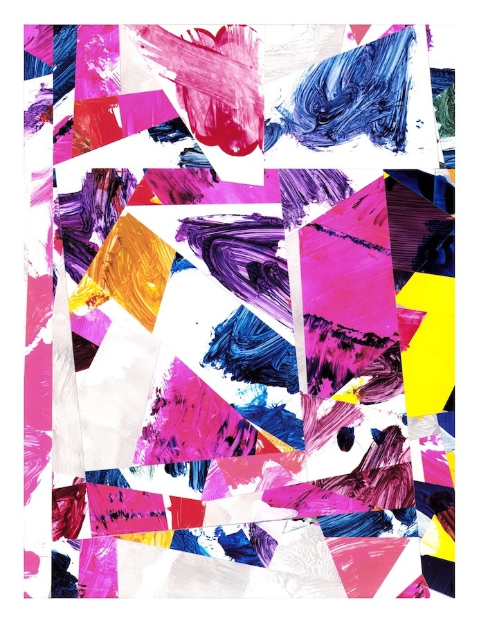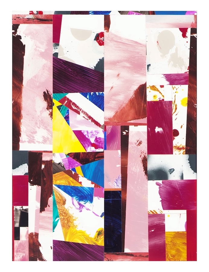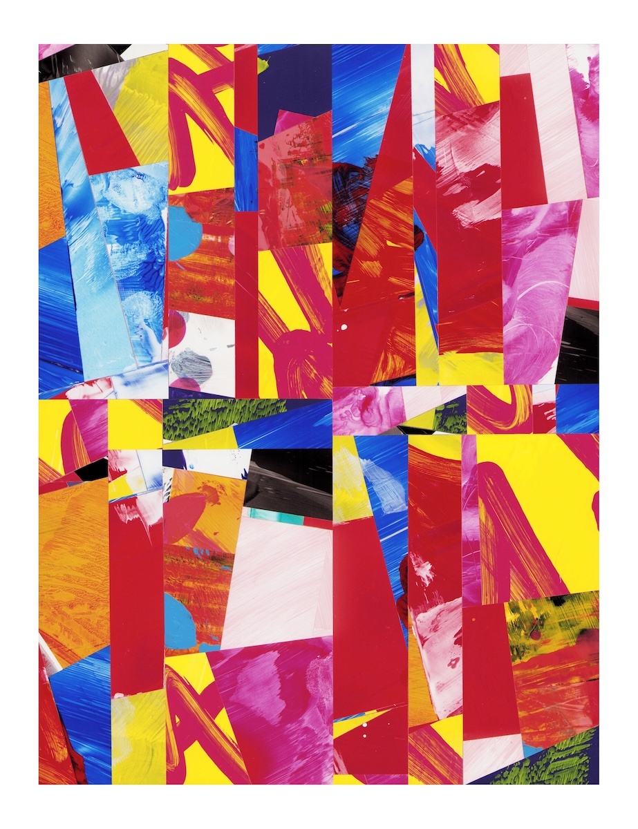 Selections- cut and assembled acrylic on PVC paper, 12″ x 9″
