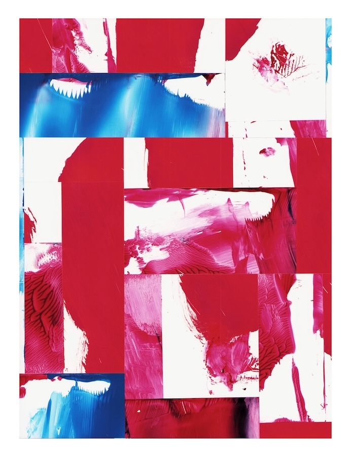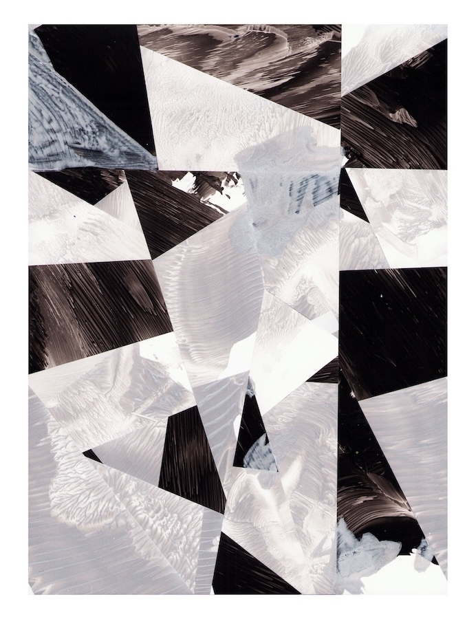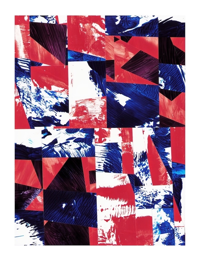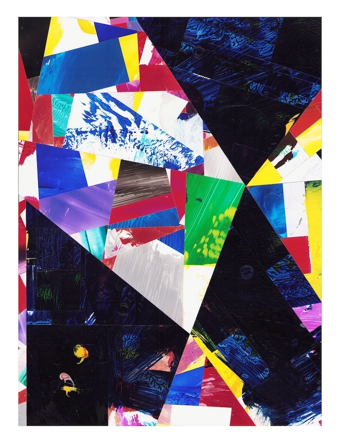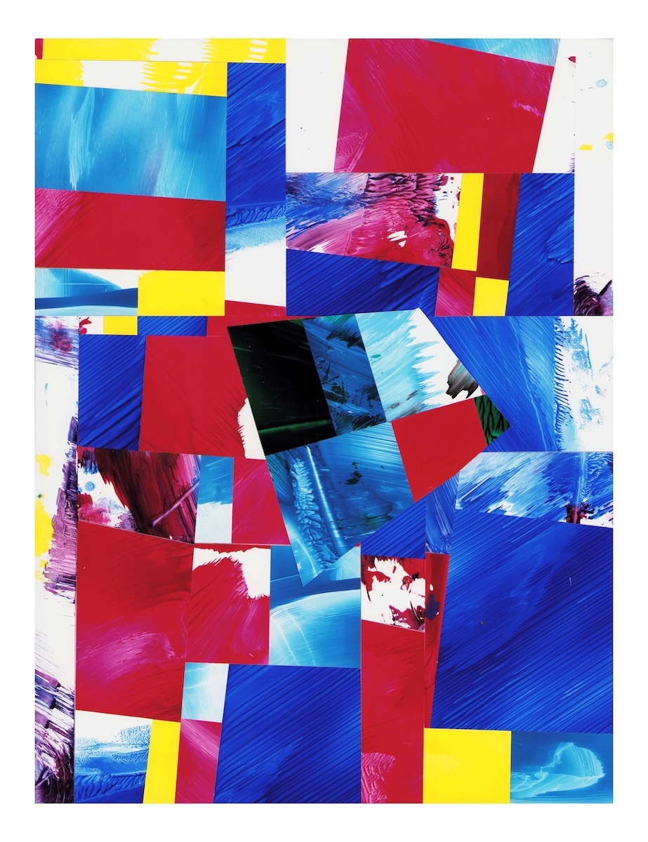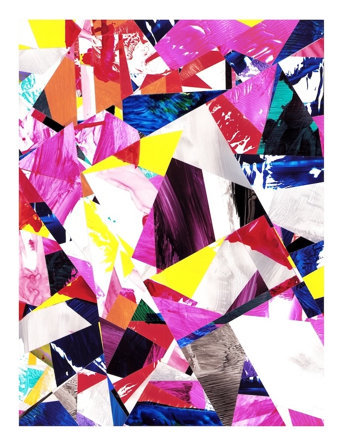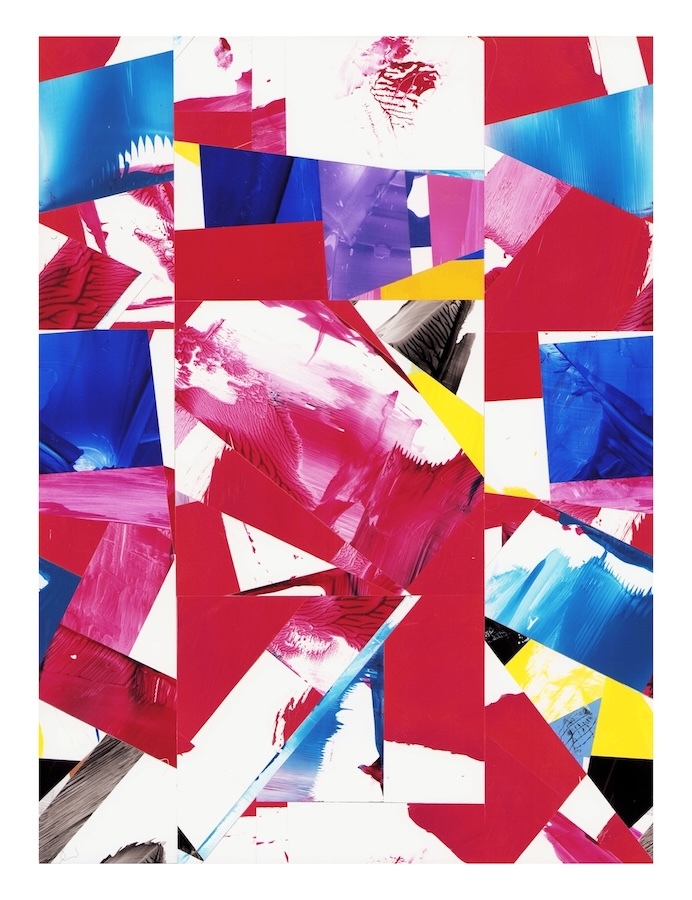 Selections- cut and assembled acrylic on PVC paper, 12″ x 9″